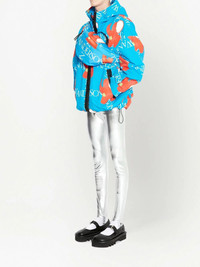 logo-print hooded jacket The playful aesthetic running through JW Anderson's AW22 Menswear collection is reflected in the design of this jacket. In bold multicolour hues, an all-over logo print is paired with an elephant pattern for a lively finish. Made in United Kingdom Composition Nylon 100%