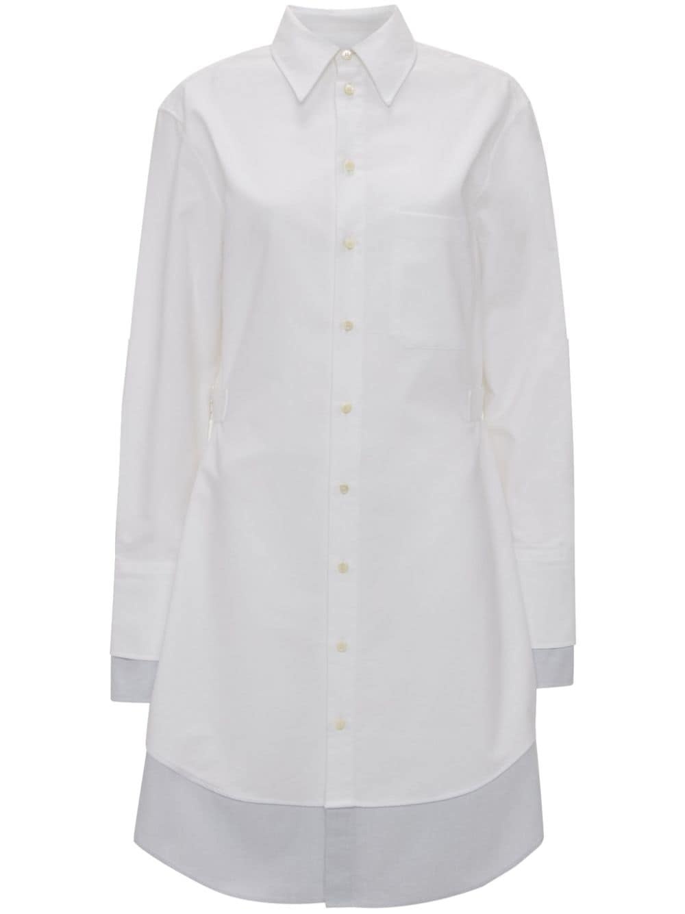 long-sleeve short shirtdress Highlights - White - Cotton - Classic collar - Front button fastening - Chest patch pocket - Long sleeves - Curved hem Imported Composition Cotton 100%