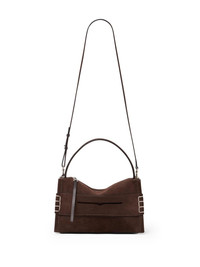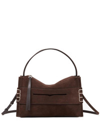 Loafer shoulder bag Highlights - Brown - Calf suede - Top zip fastening - Single circular top handle - Detachable shoulder strap - Penny slot - Contrast stitching - Main compartment - Leather lining - Internal slip pocket - Internal logo patch - Silver-tone hardware Made in Italy Composition Outer: Calf Suede 80%, Calf Leather 20% Lining: Calf Suede 100%, Polyamide 60%, Polyurethane 40% SIZE & FIT Measurement DEPTH 3.93 in(10 cm) HEIGHT 8.07 in(20.5 cm) WIDTH 11.22 in(28.5 cm)