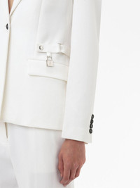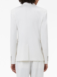notched-lapels button-fastening blazer Highlights - Optical white - Stretch-design - Padlock detail - Central rear vent - Notched lapels - Front button fastening - Two front flap pockets - Long sleeves - Buttoned-cuff sleeves - Straight hem Made in Italy Composition Polyester 53%, Wool 43%, Elastane 4% Washing instructions Read Manufacturer Guidelines