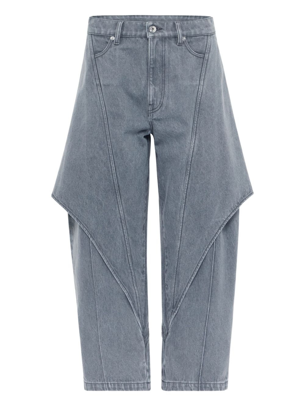 panelled denim trousers Highlights - Light grey - Layered panelling - Seam detailing - High waist - Straight leg - Button fly Imported Composition Cotton 100% Washing instructions Read Manufacturer Guidelines