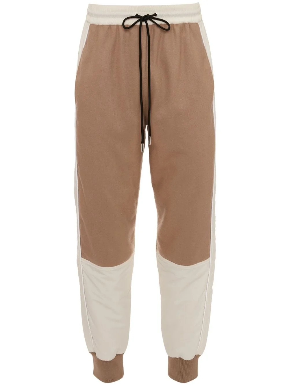 panelled drawstring track pants Highlights - Beige/white - Panelled design - Drawstring fastening waist - Straight leg - Two side slit pockets - Rear zip-fastening pocket - When buying this unisex item, keep in mind that it is graded in standard men's sizing Imported Composition Outer: Polyester 59%, Wool 41% Lining: Polyester 100%