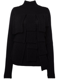 panelled flap sweater Highlights - Navy blue - Wool blend - Ribbed knit - Asymmetric design - High neck - Long sleeves - Straight hem Imported Composition Acrylic 50%, Wool 50% Washing instructions Dry Clean Only