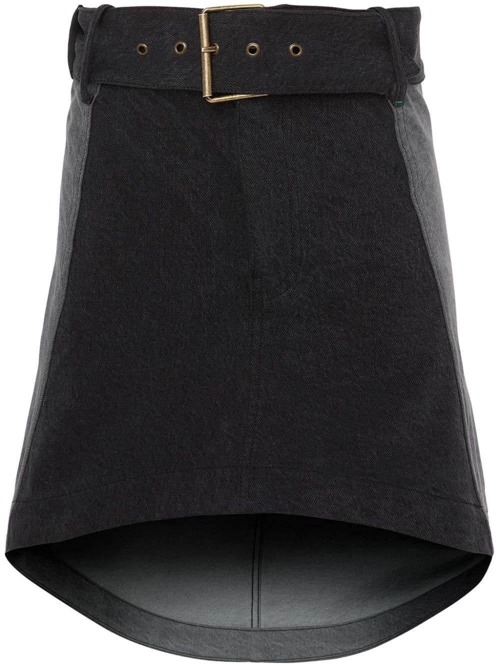 panelled mini denim skirt Highlights - Dark grey - Cotton - Panelled design - Belted waist - Rear curved hem Imported Composition Cotton 100%