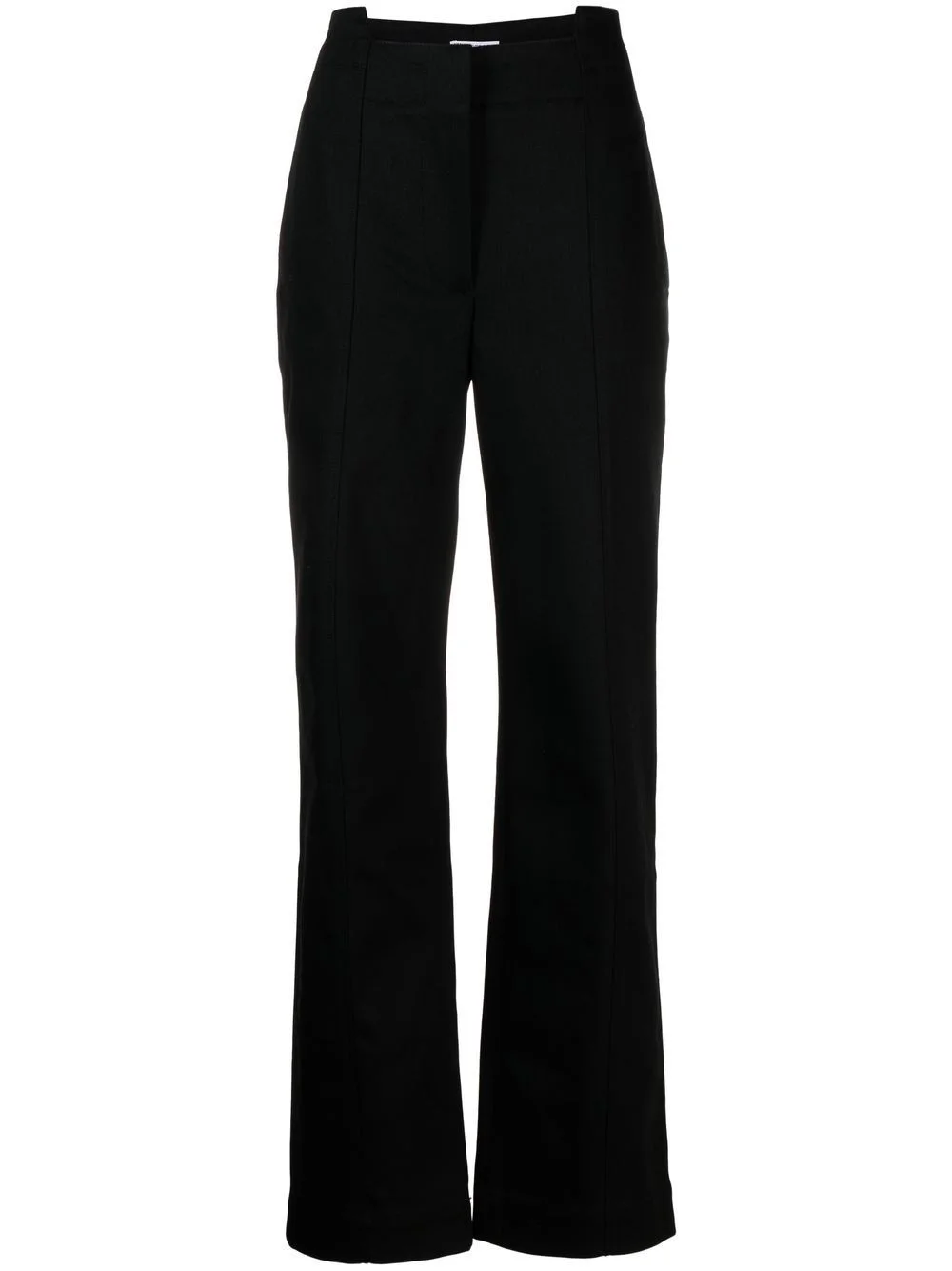 panelled straight-leg trousers JW Anderson offers a unique twist on these classic black-hued tailored trousers with an asymmetric waistband. The pair is cut to a straight-leg design for a timeless feel. Imported Composition Outer: Cotton 98%, Polyurethane 2% Lining: Cotton 100% SIZE & FIT Model measurements Height 5 ft 10 in(1.78 m) Bust/Chest 31.49 in(80 cm) Hips 35.03 in(89 cm) Waist 23.62 in(60 cm) FittingInformation This piece fits true to size. We recommend you get your regular size Designed to be fitted at the waist and hips, loose over the leg Made with a mid-weight non-stretch fabric Washing instructions Specialist Cleaning