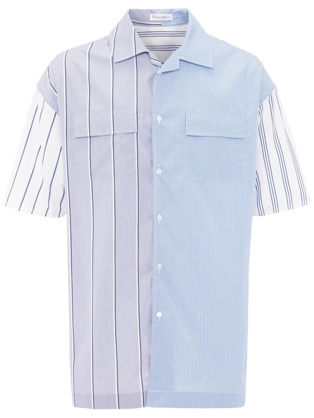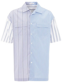 panelled stripe-print shirt white/blue cotton blend stripe print spread collar front button fastening short sleeves two chest flap pockets Imported Composition Cotton 79%, Polyester 21%