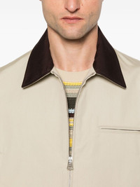 peplum-hem jacket Highlights - Light beige - Concealed front zip fastening - Contrasting collar - Zip-fastening chest pocket - Press-stud fastening cuffs Imported Composition Lining: Cotton 100% Outer: Cotton 100% SIZE & FIT Model measurements Height 6 ft 2 in(1.87 m) Bust/Chest 37.79 in(96 cm) Hips 37.79 in(96 cm) Waist 30.31 in(77 cm) FittingInformation Designed for a boxy fit, intended for a loose fit throughout The adjustable tabs allow for fitted preferences Made from a midweight non-stretch fabric Washing instructions Dry Clean Only