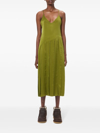 ribbon-panel midi dress Highlights - Olive green - Satin weave - Ribbon panelled design - Concealed side zip fastening - V-neck - Adjustable spaghetti straps - V-back - Straight hem - Mid-length Imported Composition Polyester 100%