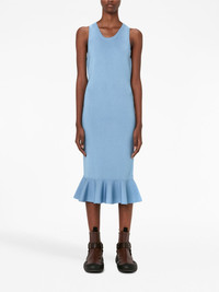 ruffled-hem dress This knitted dress from JW Anderson arrives in a sky-blue hue and is detailed with ribbed trims. A ruffle hem elevates the piece. Highlights - Sky blue - Knitted construction - Ribbed trim - Scoop neck - Sleeveless - Ruffle hem Imported Composition Body: Viscose 83%, Polyester 17%