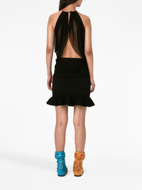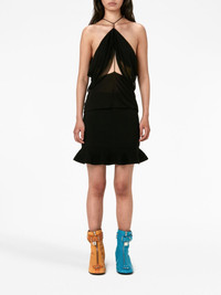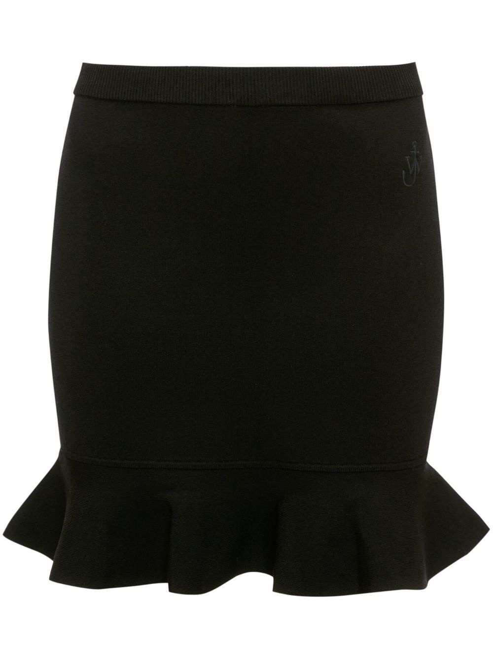 ruffled mini skirt Highlights - Black pepper - Knitted construction - Embroidered logo - High waist - Slip-on style - Ruffle hem Made in Italy Composition Viscose 77%, Polyester 17%, Polyamide 5%, Spandex/Elastane 1% SIZE & FIT Measurement HIPS 34.64 in(88 cm) LENGTH 17.32 in(44 cm) WAIST 25.19 in(64 cm)
