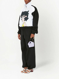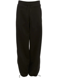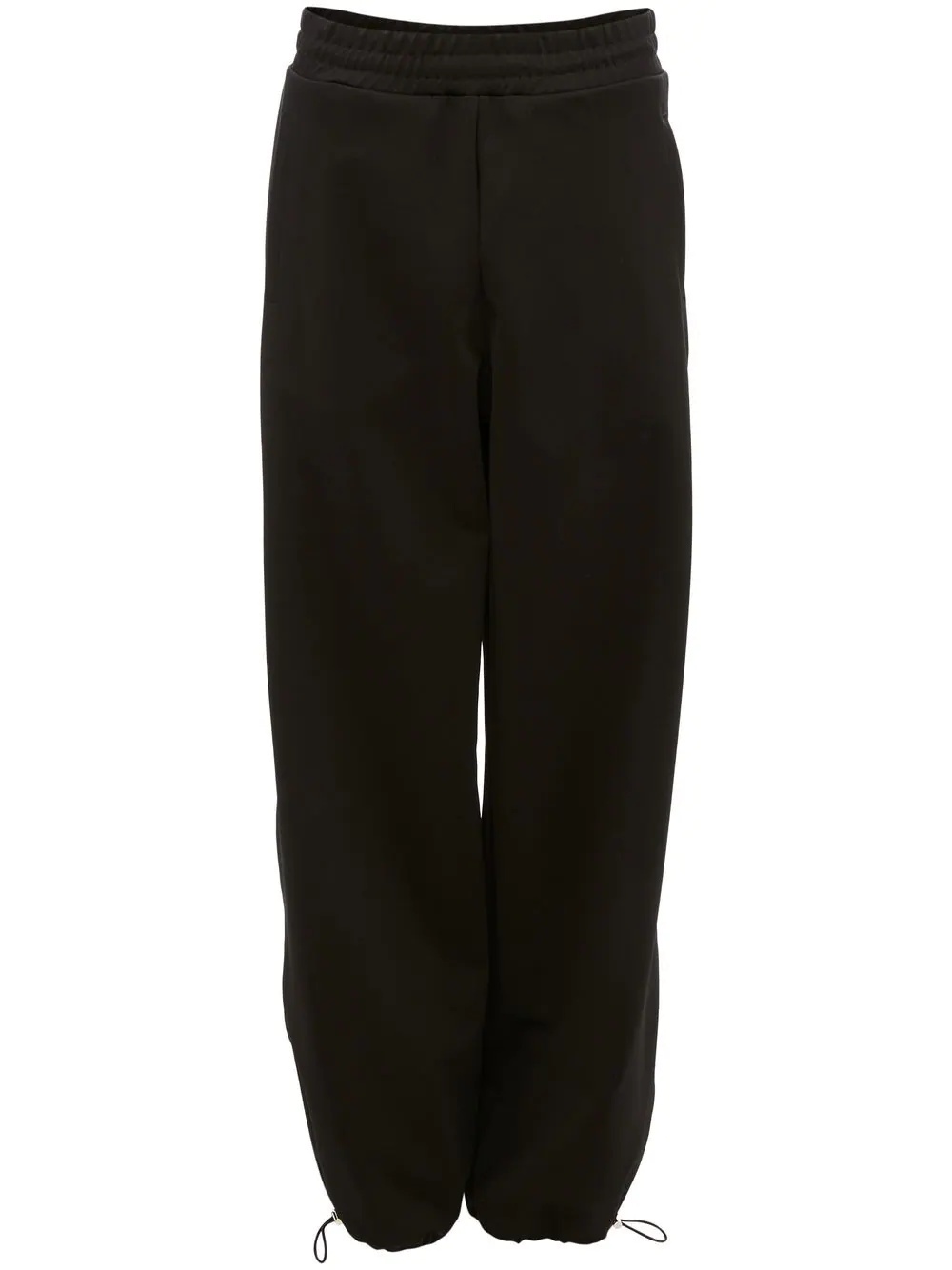 Run Hany logo track pants Designed in a versatile black hue, this pair of wide-leg track pants from JW Anderson offers up a casual choice ideal for everyday dressing. Built with a comfortable elasticated waistband, the pair feature drawstring-fastening cuffs, and two side slip pockets. Imported Composition Polyester 94%, Elastane 6%