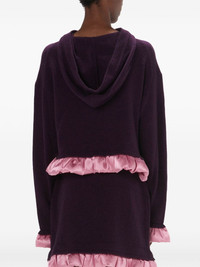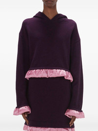 satin-trimmed cropped hoodie Highlights - Plum purple - Rose pink - Merino wool - Knitted construction - Signature jw-initials anchor logo - Gathered detailing - Contrasting satin trim - Slouchy hood - Drop shoulder - Long sleeves - Ruffle cuffs and hem - Cropped Imported Composition Polyester 100%, Merino 100%