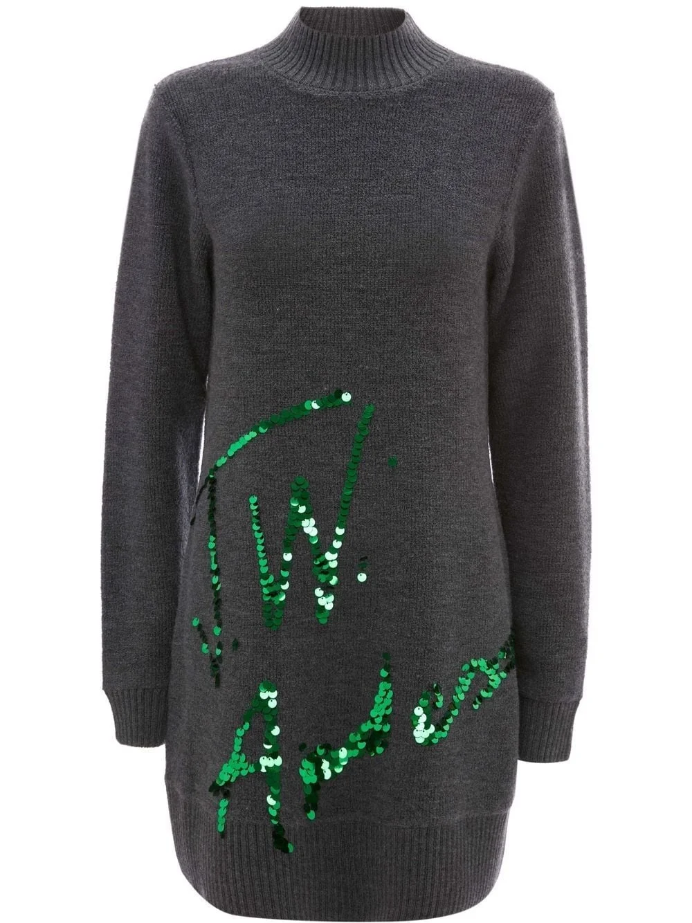 sequins-logo knitted minidress Playfully arranged in the shape of JW Anderson's logo, green sequins decorate the front of this knitted minidress. This showcases the British designer's penchant for adding unexpected details to wardrobe staples. Imported Composition Wool 98%, Elastane 2%
