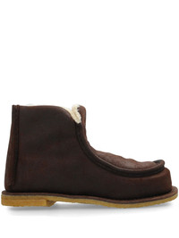 shearling-lined suede boots Highlights - Brown - Calf suede - Shearling lining - Slip-on style - Round toe - Flat rubber sole - Ankle-length Made in Italy Composition Suede 100% SIZE & FIT Measurement HEEL 1.18 in(3 cm) Sole height 0.39 in(1 cm)