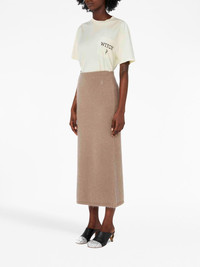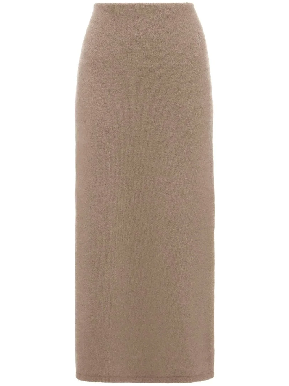 side-slit tube skirt Highlights - Beige - Mohair blend - High waist - Slip-on style - Side slit - Mid-length Imported Composition Mohair 52%, Polyamide 35%, Merino 13% SIZE & FIT Measurement HIPS 37.79 in(96 cm) LENGTH 36.61 in(93 cm) WAIST 28.34 in(72 cm) Washing instructions Read Manufacturer Guidelines