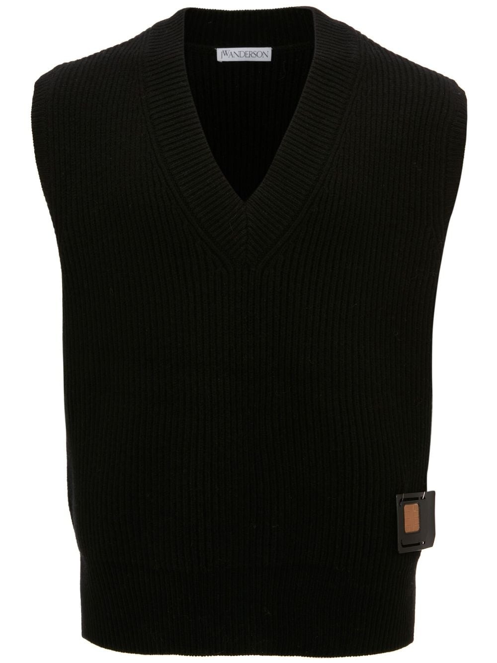 Sim Card V-neck merino vest Highlights - Jet black - Merino wool - Knitted construction - Sim card patch to the front - V-neck - Sleeveless - Ribbed hem - When buying this unisex item, keep in mind that it is graded in standard men's sizing Imported Composition Merino 100%