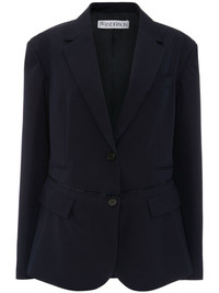 single-breasted blazer Known for their contemporary, playful aesthetic, JW Anderson chooses to showcase a more refined side in this single-breasted blazer through the navy tone and classically tailored silhouette. Imported Composition Viscose 53%, Wool 47%
