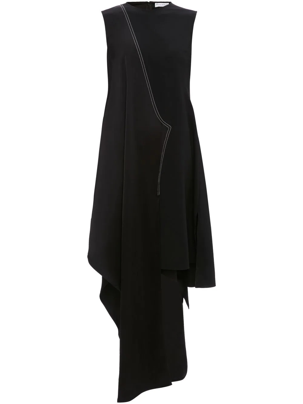 sleeveless asymmetric dress JW Anderson showcases its aptitude for tailoring and rebellious spirit in this sleeveless dress design. Crafted in a seasonless black hue, the uniquely draped asymmetric hem expresses the brand's subversive design approach. Imported Composition Viscose 63%, Nylon 32%, Elastane 5%