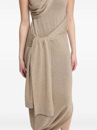 sleeveless midi dress Highlights - Light brown - Draped design - Asymmetrical design - Sleeveless - Side slit Imported Composition Lyocell 60%, Merino 40% Washing instructions Read Manufacturer Guidelines