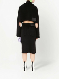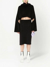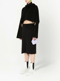 wool-blend midi pencil skirt JW Anderson presents this knitted skirt for AW22, which has been crafted from a soft wool and mohair-blend construction. Designed with a classic pencil silhouette, this versatile wardrobe staple features slit detailing for a signature finish. Made in Italy Composition Wool 44%, Mohair 38%, Nylon 18%