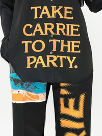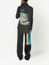 slogan-print cotton shirt JW Anderson embraces a theatrical horror aesthetic in this long-sleeved shirt design. Crafted from classic black cotton, the piece features a striking slogan print to the front and a spooky graphic print to the rear, inspired by the classic horror film, Carrie. Imported Composition Cotton 100%