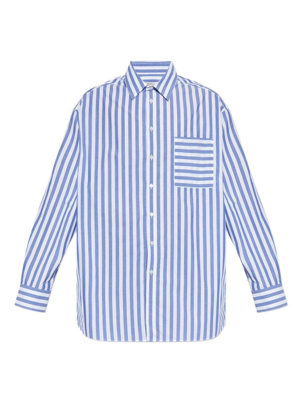 striped button-up shirt Highlights - Light blue - Multi-way stripe pattern - Single chest pocket - Classic collar - Button-up fastening - Long sleeves Imported Composition Cotton 100%