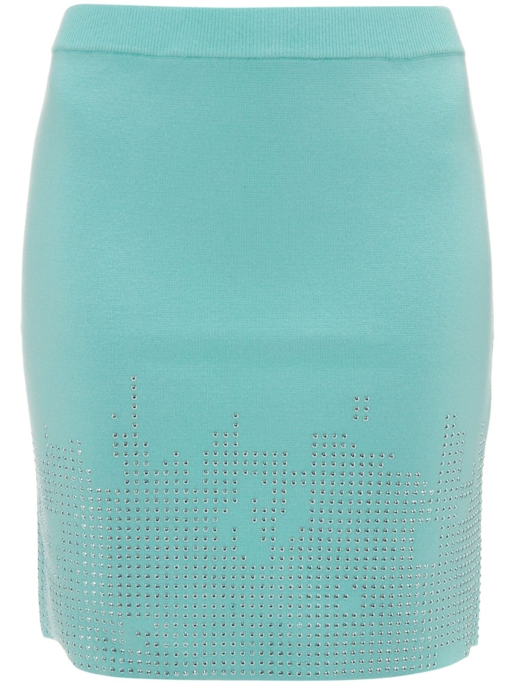 stud-detail knitted skirt Highlights - Turquoise blue-green - Merino wool - Knitted construction - Stud detailing - Elasticated waistband - Thigh-length Imported Composition Merino 100%