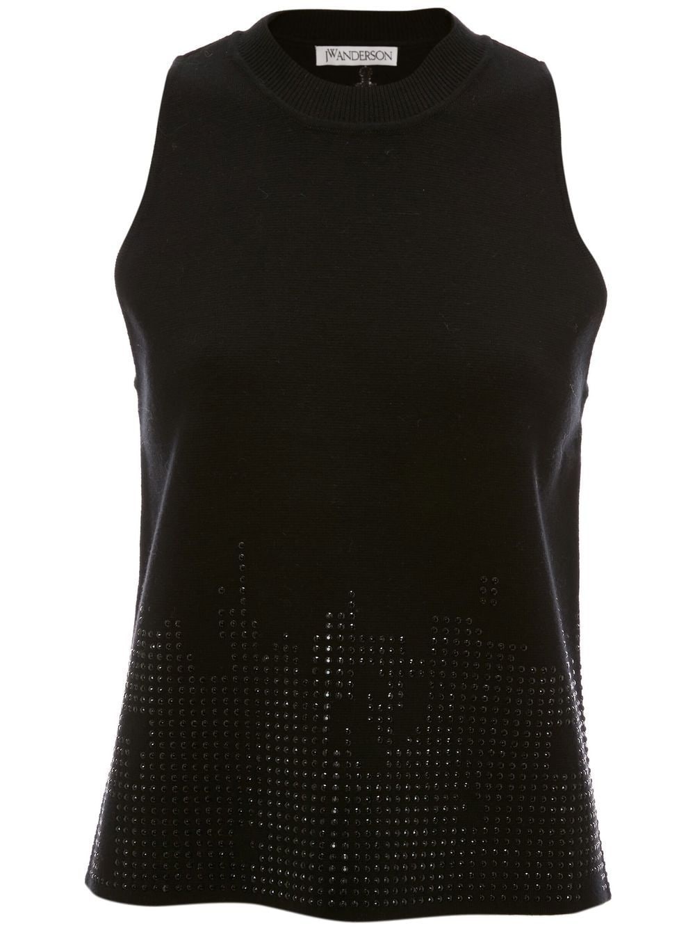 studded knitted tank top black merino wool fine knit stud detail at the hem crew neck sleeveless straight hem Imported Composition Body: Merino 100%