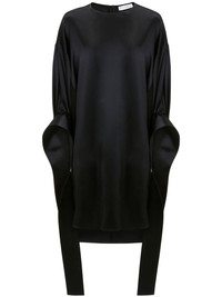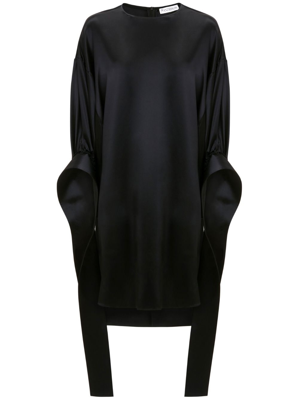 Tab Sleeve satin-finish minidress Highlights - Black - Satin finish - Round neck - Extra-long sleeves - Drop shoulder - Above-knee length Imported Composition Polyester 100% Washing instructions Read Manufacturer Guidelines
