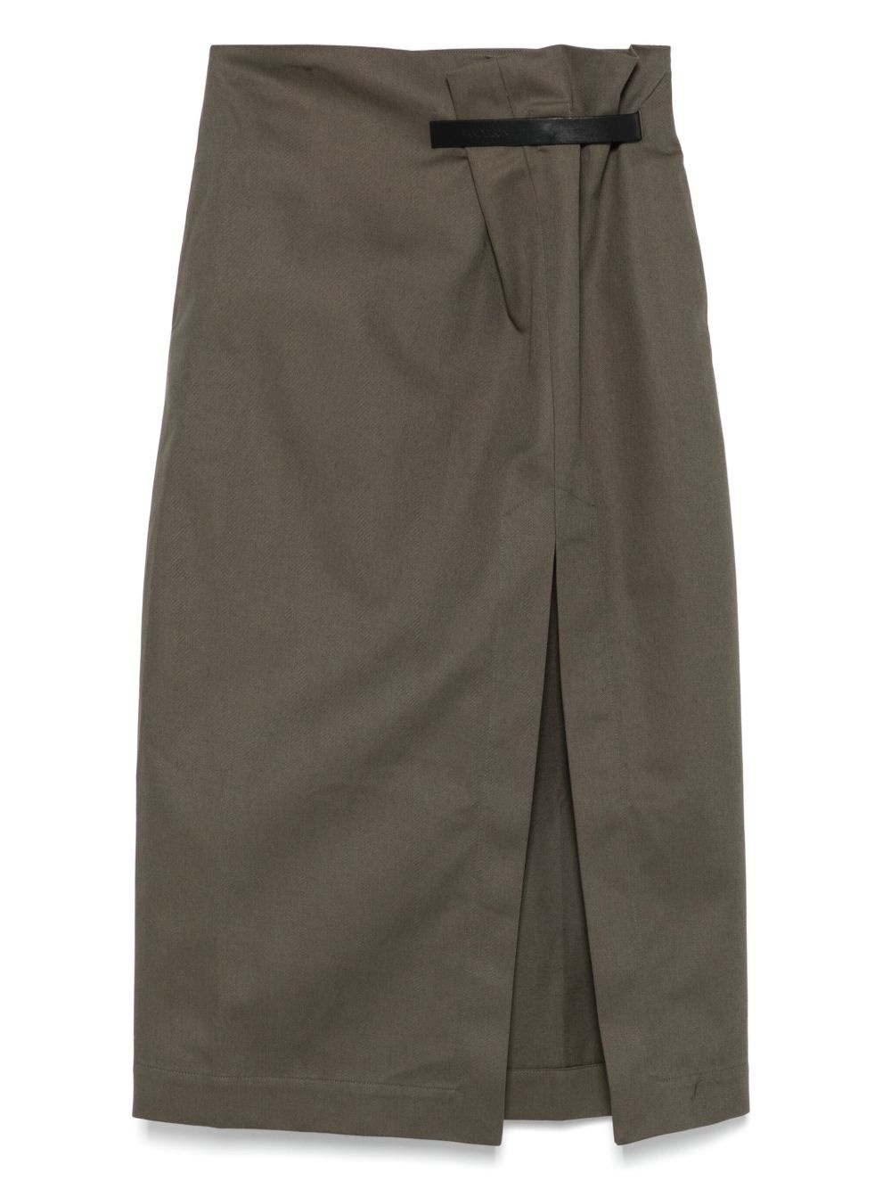 twill-weave midi skirt Highlights - Khaki - Concealed side hook and zip fastening - Two side inset pockets - Front slit Imported Composition Cotton 100%