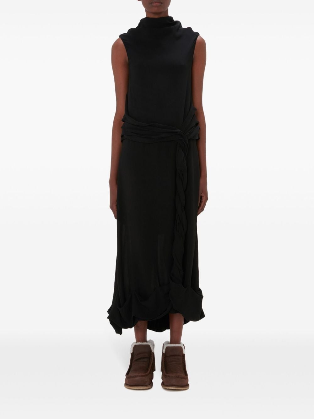 Twisted sheer dress Highlights - Black - Twist detailing - Draped detailing - High neck - Sleeveless - Open back - Mid-length Imported Composition Viscose 100%