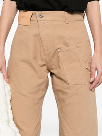 Twisted Workwear trousers Highlights - Beige - Off-centre front button fastening - Two side slit pockets - Front patch pocket - Two rear patch pockets Imported Composition Outer: Cotton 100% Lining: Cotton 100% SIZE & FIT Model measurements Height 5 ft 10 in(1.78 m) Bust/Chest 33.46 in(85 cm) Hips 36.22 in(92 cm) Waist 23.22 in(59 cm) FittingInformation Designed for a straight-leg fit, these jeans allow for a close fit at the waist and an unrestricted and comfortable fit over the leg Sturdy and hard-wearing, this denim piece offers no stretch