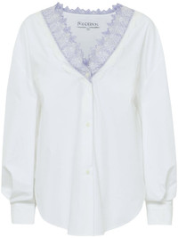 V-neck lace-trim shirt Highlights - White - Cotton - Lace trim - Front button fastening - V-neck - Long sleeves - Buttoned cuffs - Curved hem Imported Composition Cotton 100%