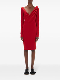 V-neck midi dress Highlights - Red - Ruched detailing - V-neck - Long sleeves - Straight hem Imported Composition Polyester 100%
