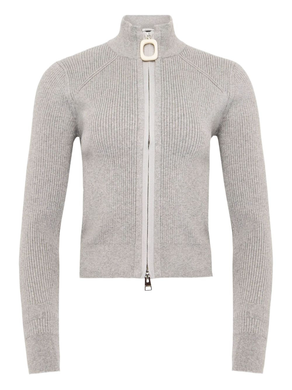 zip-up cardigan Highlights - Light grey - Zip fastening - High neck - Long sleeves Imported Composition Cotton 84%, Polyamide 11%, Cashmere 4%, Elastane 1% Washing instructions Read Manufacturer Guidelines