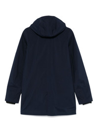 Duke Bonded coat Highlights - Navy blue - Front two-way zip fastening - Stand-up collar - Detachable hood - Logo patch at the chest - Long sleeves - Eyelet vents - Fitted-cuff sleeves - Two side zip-fastening pockets - Fleece lining - Rear curved hem Imported Composition Lining: Polyamide 100% Outer: Polyester 85%, Thermoplastic Polyurethane (TPU) 15% Washing instructions Machine Wash