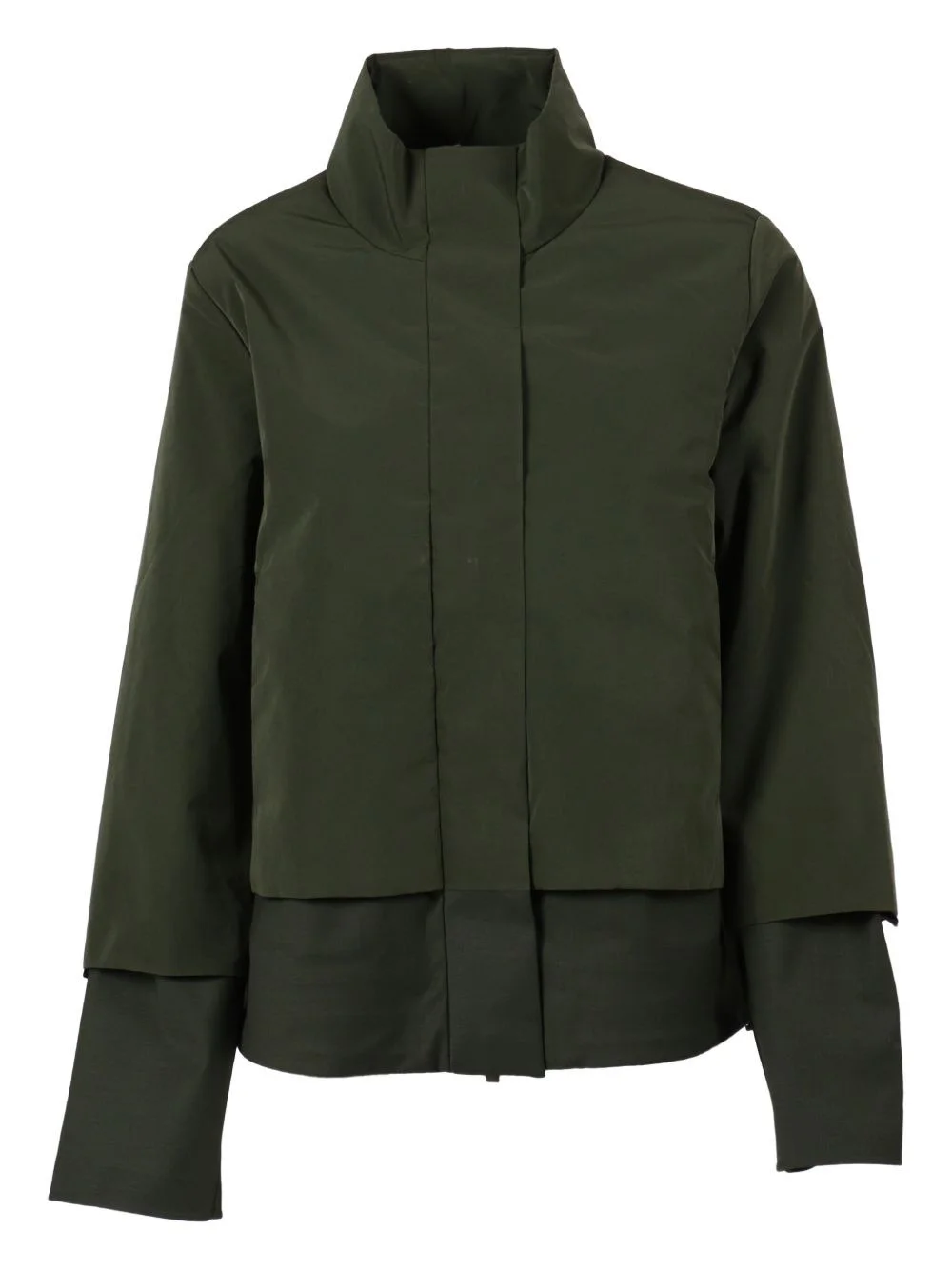 Isan zip-up jacket Highlights - Dark green - High collar - Adjustable cuffs with snap buttons - Layered effect - Zip fastening - Adjustable drawstring waist Imported Composition Lining: Polyester 100% Outer: Recycled Polyester 70%, Nylon 30% Washing instructions Read Manufacturer Guidelines