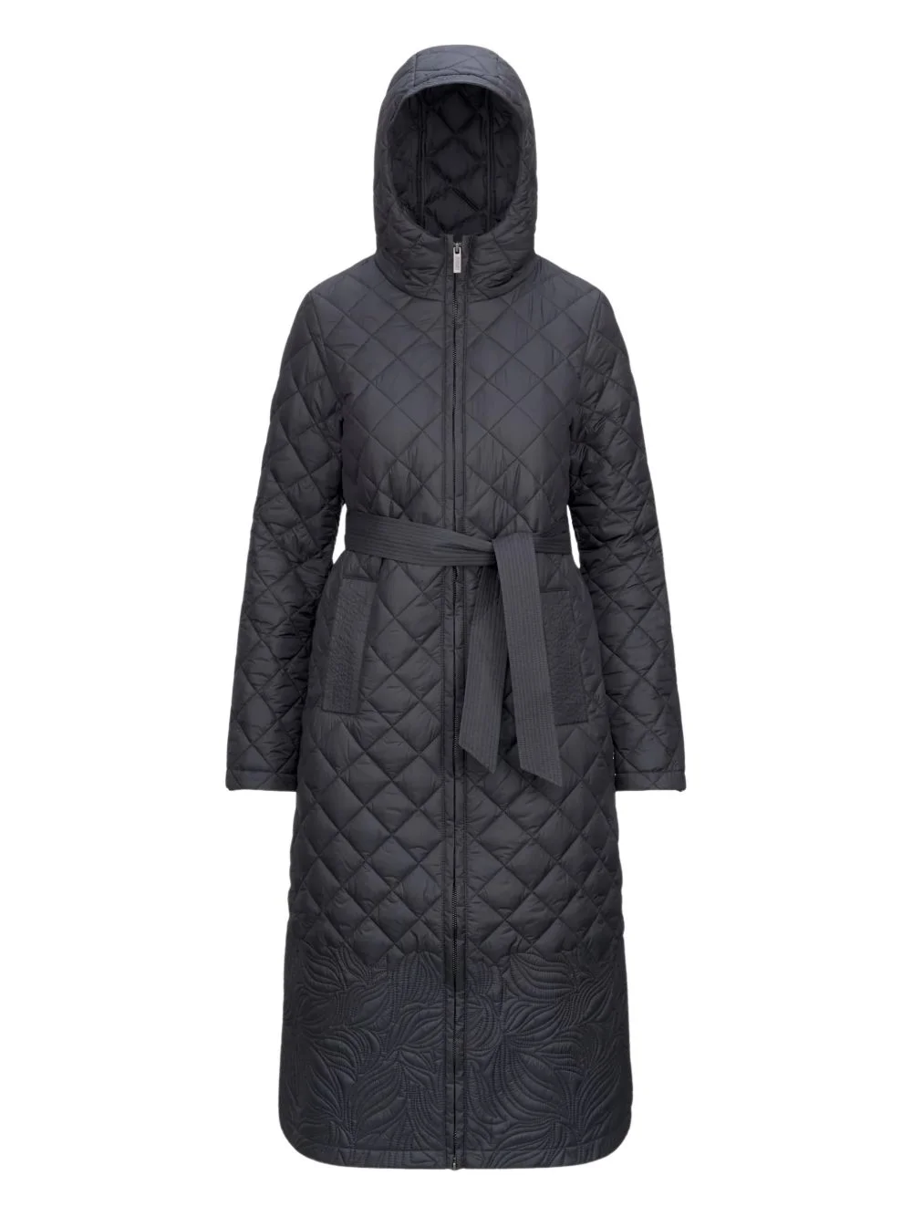 Quilted Belted Hooded Jacket Highlights - Grey - Quilted - Hooded - Belt - Front zip fastening - Floral design Imported Composition Polyester 100% Washing instructions Read Manufacturer Guidelines