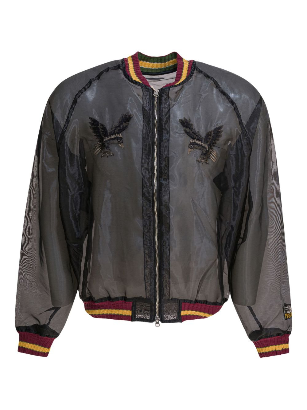 eagle-embroidered jacket Highlights - Black - Embroidered eagle - Ribbed hem - Ribbed cuffs - Front fastening - Zip fastening Imported Composition Polyester 100% Washing instructions Read Manufacturer Guidelines
