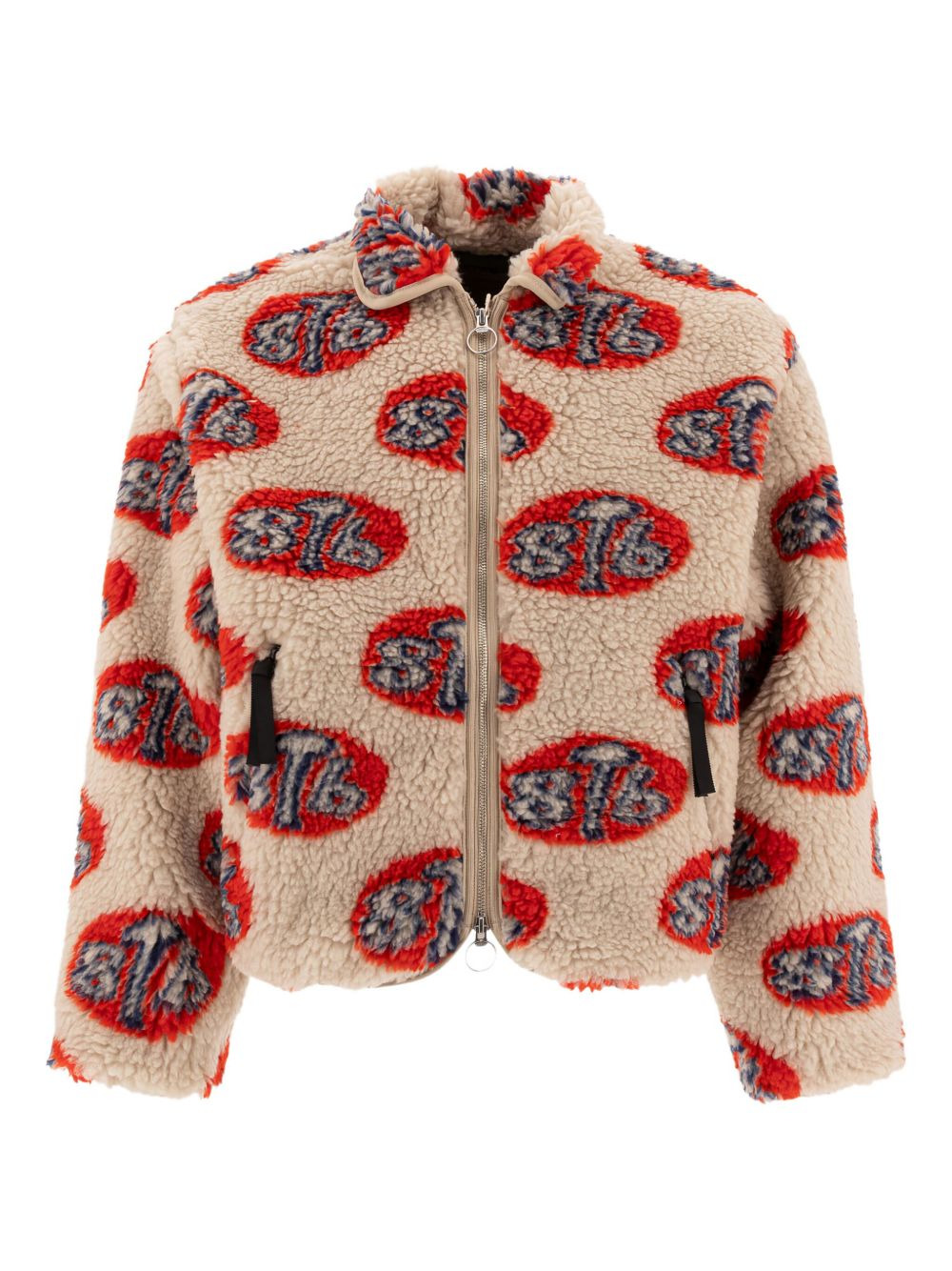 logo-pattern fleece jacket Highlights - Beige - Fleece texture - Red logo pattern - Zip front fastening - Welt pockets - High neck Imported Composition Nylon 100% Washing instructions Read Manufacturer Guidelines