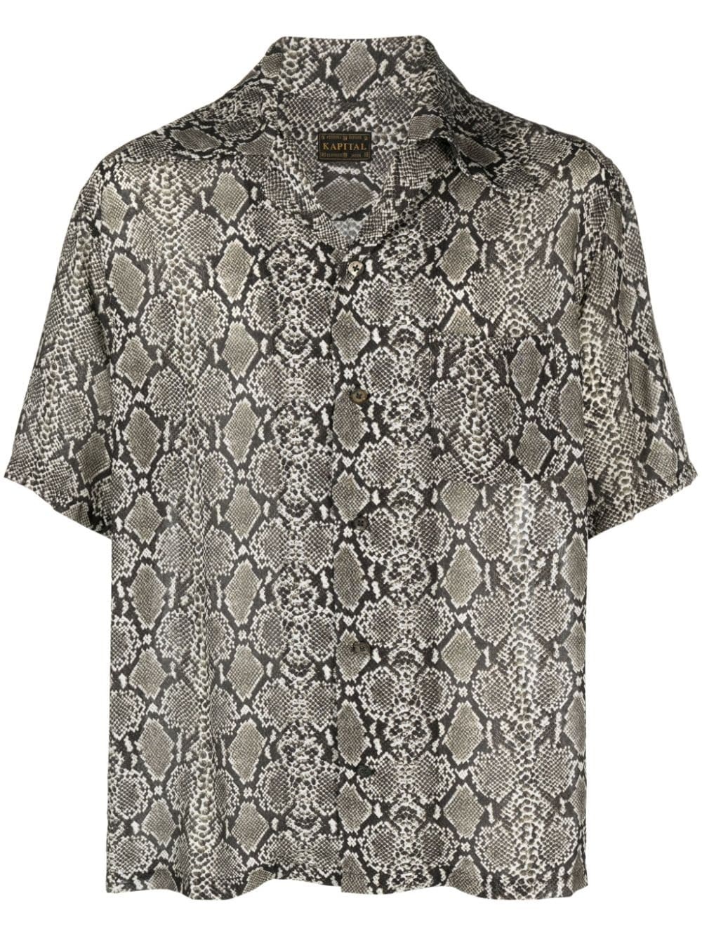 short-sleeve snakeskin-print shirt Highlights - Grey/white - Snakeskin print - Spread collar - Front button fastening - Drop shoulder - Short sleeves - Chest patch pocket - Straight hem Imported Composition Cupro 96%, Silk 4% SIZE & FIT Model measurements Height 6 ft 2 in(1.88 m) Bust/Chest 36.61 in(93 cm) Hips 35.82 in(91 cm) Waist 27.95 in(71 cm) FittingInformation Designed for a relaxed fit, this piece allows for comfort and movement when worn Made from a midweight non-stretch fabric, this piece offers minimal elasticity when worn This piece fits true to size – take your usual size