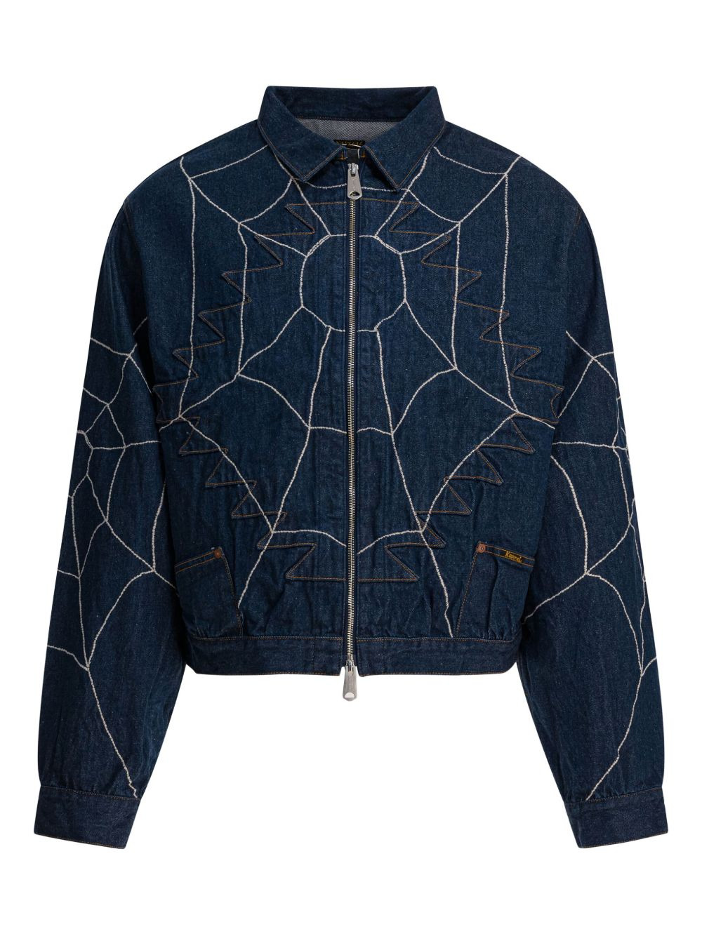 spiderweb-embroidered denim jacket Highlights - Dark blue - Cotton - Spiderweb embroidery - Zip front fastening - Long sleeves - Welt pockets Imported Composition Cotton 100% Washing instructions Read Manufacturer Guidelines