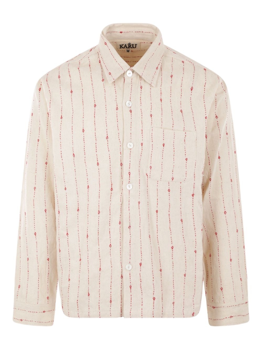 embroidered cotton shirt Highlights - Ivory - Red embroidery - Vertical stripes - Classic collar - Button closure - Patch pocket Imported Composition Cotton 100% Washing instructions Read Manufacturer Guidelines