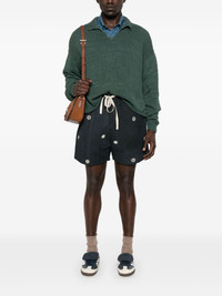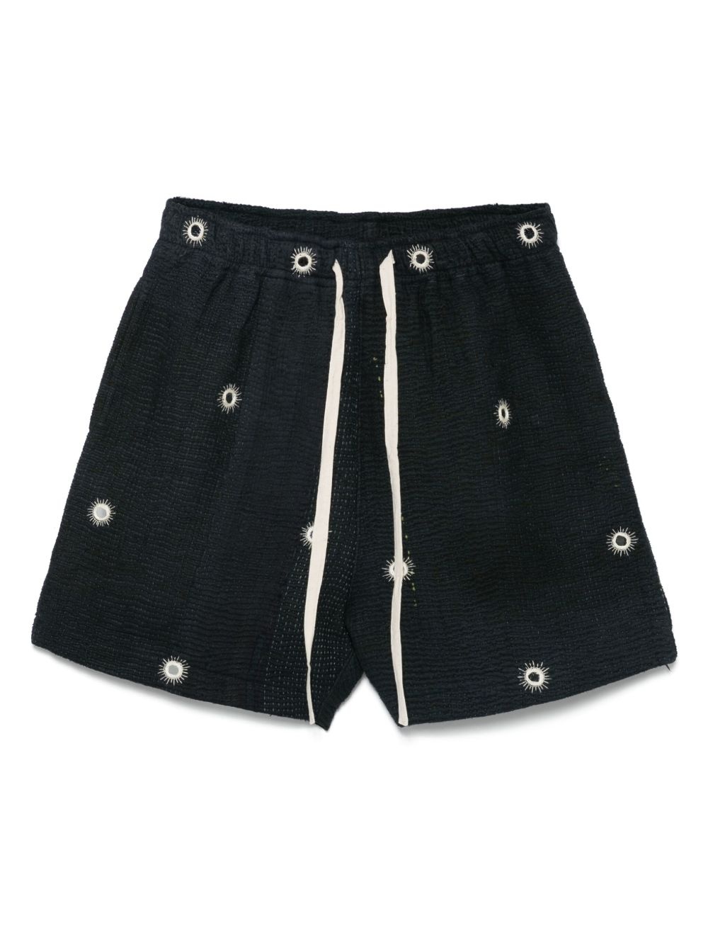 Straight-Leg Embellished Kantha Cotton Drawstring Shorts