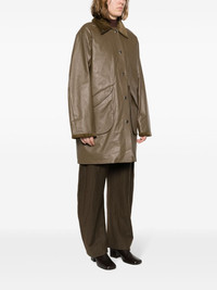 corduroy-collar button-up coat Highlights - Mud brown - Coated finish - Tonal stitching - Silver-tone hardware - Corduroy collar - Off-centre front button fastening - Long sleeves - Two front flap pockets - Straight hem Imported Composition Lining: Polyester 100% Outer: Polyester 100%, Cotton 68%, Polyurethane 29%, Elastane 3% SIZE & FIT Model measurements Height 5 ft 10 in(1.79 m) Bust/Chest 32.67 in(83 cm) Hips 34.25 in(87 cm) Waist 24.4 in(62 cm) FittingInformation Designed to be unstructured, offering a loose fit throughout Made from a midweight fabric This piece fits true to size – take your usual size