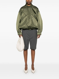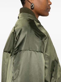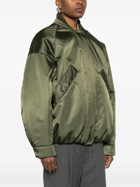 padded bomber jacket Highlights - Khaki - Front press-stud and zip fastening - Two press-stud fastening side pockets - Press-stud fastening cuffs - Drawstring hem Imported Composition Outer: Merino 100%, Polyamide 96%, Polyurethane 4% Lining: Viscose 100%, Polyester 100% SIZE & FIT Model measurements Height 5 ft 11 in(1.8 m) Bust/Chest 31.49 in(80 cm) Hips 36.61 in(93 cm) Waist 24.4 in(62 cm) FittingInformation Designed for an oversized fit, offering additional room throughout The internal drawstring at the hem allows for fitted preferences Made from a padded non-stretch fabric, giving it no natural elasticity