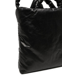 top-handle tote black cotton blend circular top handles single shoulder strap Imported Composition Cotton 68%, Polyurethane 29%, Elastane 3% SIZE & FIT Model measurements Height 5 ft 11 in(1.8 m) Bust/Chest 28.34 in(72 cm) Hips 35.43 in(90 cm) Waist 23.62 in(60 cm) Measurement DEPTH 2.75 in(7 cm) HANDLE 2.55 in(6.5 cm) HEIGHT 13.38 in(34 cm) STRAP 11.02 in(28 cm) WIDTH 13.77 in(35 cm)