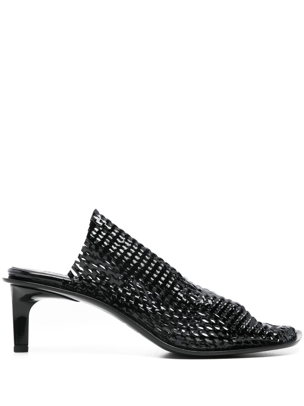 55mm mesh-design mules Highlights - Black - Low sculpted heel - Square toe - Leather sole Made in Italy Composition Outer: Polyurethane 100%, Calf Leather 100% Sole: Calf Leather 100%, Rubber 100% Lining: Calf Leather 100% SIZE & FIT Measurement HEEL 2.16 in(5.5 cm)
