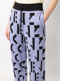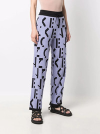 all-over logo-print trousers purple/black stretch-cotton all-over logo print elasticated drawstring waistband two side inset pockets Imported Composition Cotton 56%, Rayon 25%, Polyamide 14%, Spandex/Elastane 5% SIZE & FIT Model measurements Height 5 ft 10 in(1.77 m) Bust/Chest 35.03 in(89 cm) Hips 35.03 in(89 cm) Waist 23.62 in(60 cm) FittingInformation This piece fits true to size. We recommend you get your regular size Designed to be fitted at the waist and hips, loose over the leg Made with a mid-weight stretch fabric Washing instructions Hand Wash