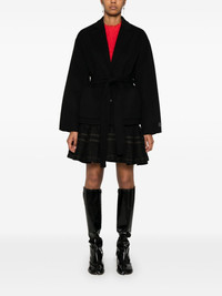 belted jacket Highlights - Black - Wool-cashmere blend - Felted finish - Detachable belt - Front button fastening - Notched lapels - Long sleeves - Two side patch pockets - Unlined - Straight hem Imported Composition Wool 90%, Cashmere 10% SIZE & FIT Model measurements Height 5 ft 10 in(1.77 m) Bust/Chest 33.07 in(84 cm) Hips 37 in(94 cm) Waist 24.8 in(63 cm) FittingInformation Designed to be unstructured, offering a loose fit throughout The tie fastening gives an adaptable and personalised fit Made from a midweight non-stretch fabric